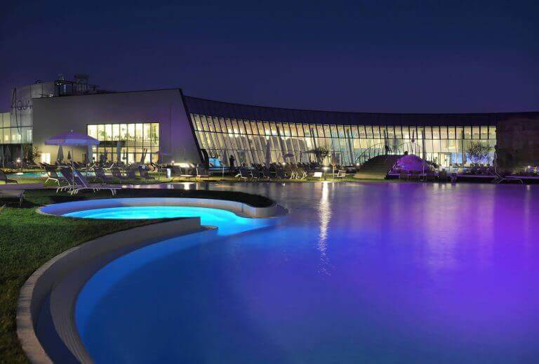 Certamente un’eccellenza nel suo genere, il parco Aquardens è stato realizzato in una zona molto ricca di acqua termale salso-bromo-iodica (ricca di cloruro di sodio, bromo e iodio, ma anche di calcio, magnesio e ferro) presente in questo territorio da sempre. La temperatura dell’acqua termale è compresa tra i 28°C e i 38°C ed è particolarmente indicata per i trattamenti di balneoterapia.